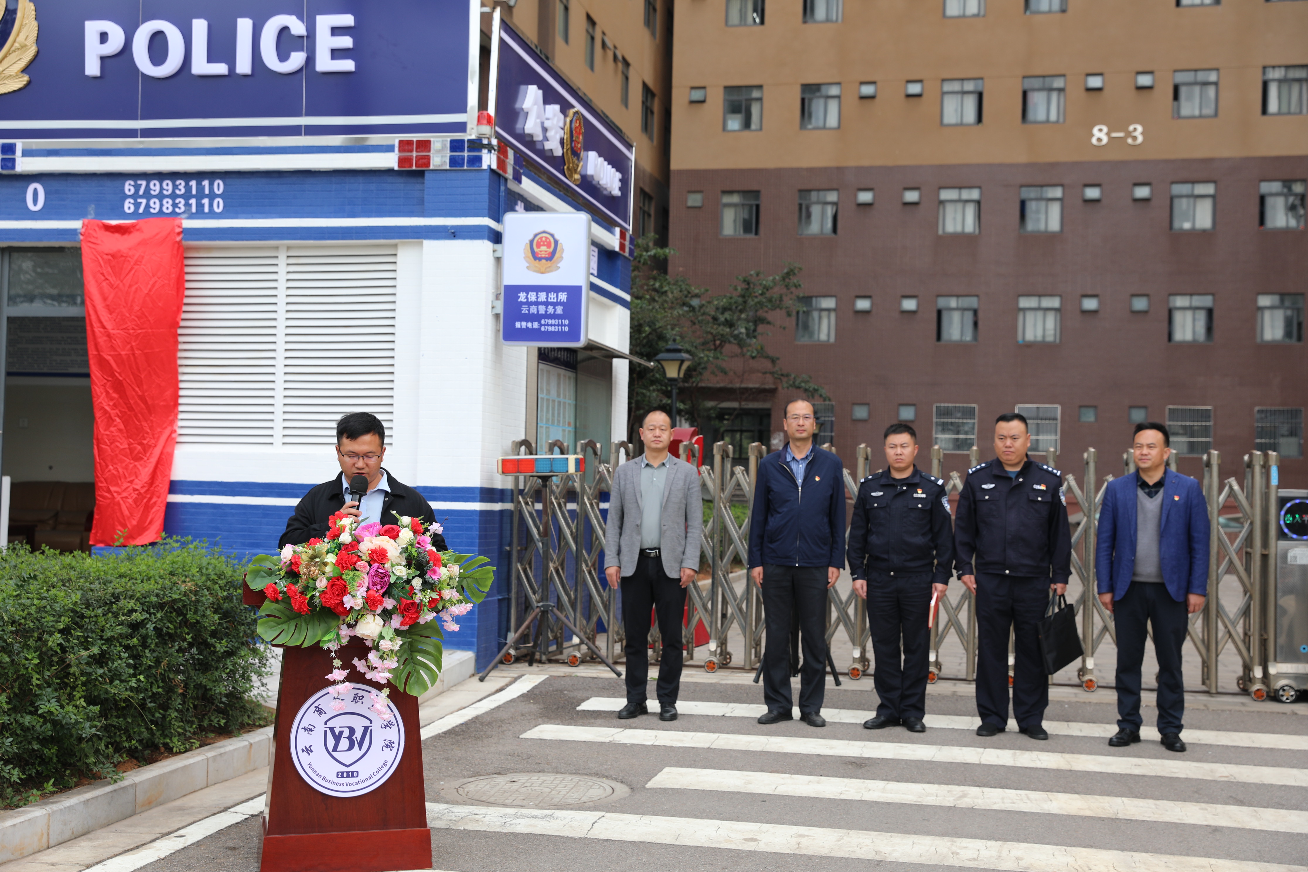 副校長(zhǎng)武紹宏在儀式上致辭,首先向龍保派出所長(zhǎng)期給予云商安全、法制工作的指導(dǎo)、幫助和支持表示誠(chéng)摯的感謝,對(duì)今天蒞臨儀式現(xiàn)場(chǎng)的李曉明副所長(zhǎng)、楊志剛警官表示熱烈的歡迎!他強(qiáng)調(diào)本次儀式舉行的意義和重要性,他指出今天的儀式標(biāo)志著云商在壓降警情、法制教育、安全管理、維護(hù)師生權(quán)益、確保校園安全等安全管理方面邁出了堅(jiān)實(shí)的一步。他對(duì)抓好、抓實(shí)壓降警情及安全管理提出相關(guān)要求,再加強(qiáng)宣傳、再加強(qiáng)管理、再加強(qiáng)聯(lián)動(dòng)。