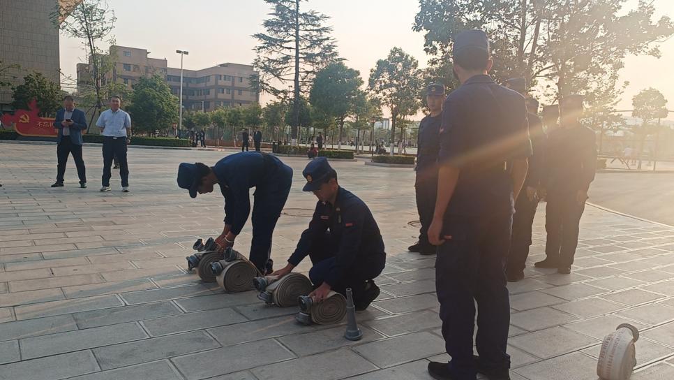 第三個(gè)科目滅火實(shí)戰(zhàn)操作展演,現(xiàn)場(chǎng)展示兩盤水帶、分水器連結(jié),滅火器滅火實(shí)操,普及滅火器使用要領(lǐng)和方法,克服火災(zāi)恐慌意識(shí),鍛煉初期火災(zāi)撲救能力。