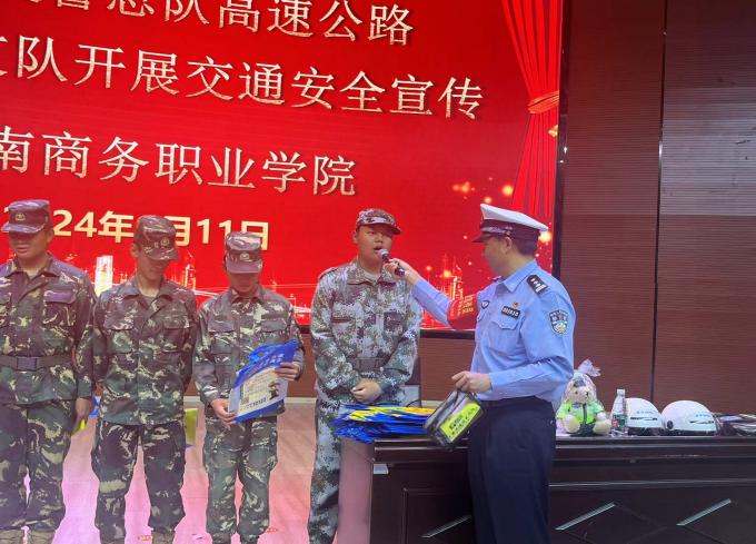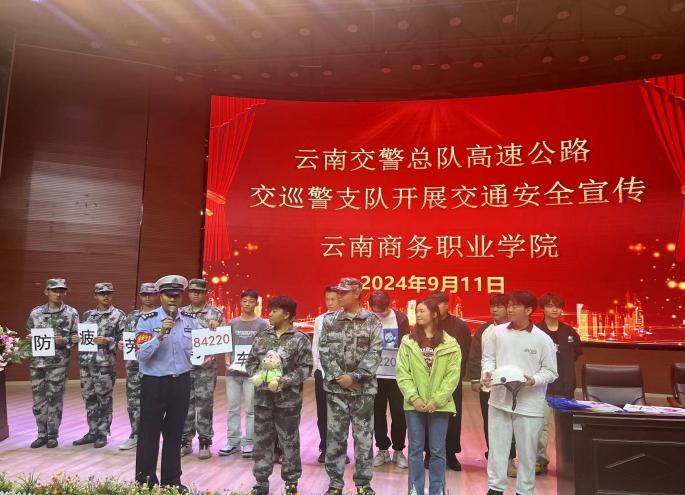 為進(jìn)一步提升師生交通安全意識,培養(yǎng)良好的安全出行習(xí)慣,有效預(yù)防和減少涉校人員交通安全事故,全力筑牢校園交通安全屏障,9月11日,云南交警總隊(duì)高速公路交巡警支隊(duì)和云南東方時(shí)尚交通安全宣講團(tuán)走進(jìn)云南云南商務(wù)職業(yè)學(xué)院,為廣大師生開展交通宣講活動。