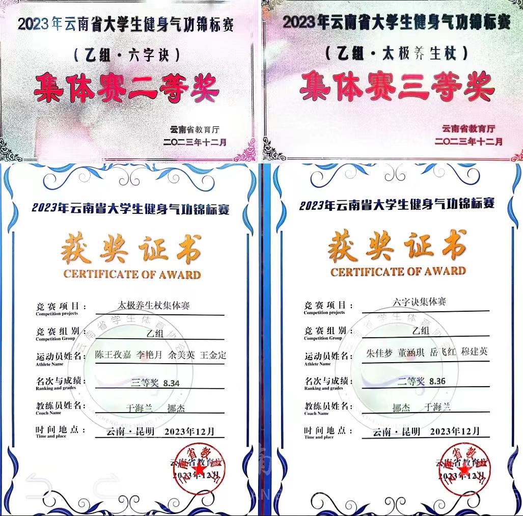 我校在武紹宏副校長的帶領(lǐng)下和于海蘭和挪杰老師的指導(dǎo)下。1隊穆建英、朱佳夢、岳飛紅、董涵琪同學(xué)獲健身氣功“六字訣”集體項目二等獎;2隊李艷月、余美英、王金定、陳王孜嘉同學(xué)獲健身氣功“太極養(yǎng)身杖”集體項目三等獎;朱佳夢同學(xué)獲個人項目“六字訣”三等獎;岳飛紅同學(xué)獲個人項目“五禽戲”三等獎;李艷月同學(xué)獲個人項目“太極養(yǎng)身杖”三等獎;李艷月和岳飛紅同學(xué)被評為優(yōu)秀運動員;于海蘭和挪杰老師被評為優(yōu)秀教練員。