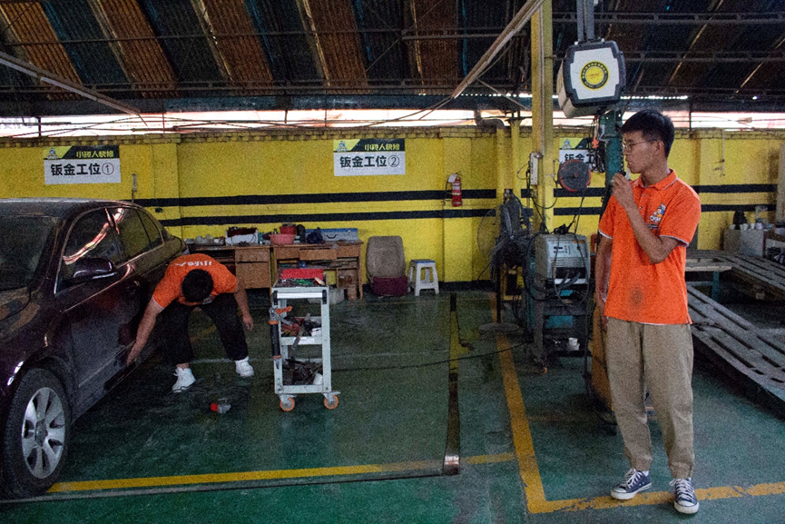 汽修班的同學(xué)在我們來(lái)到的時(shí)候都一直在忙,忙著給車(chē)進(jìn)行美容保養(yǎng)和維修, 在某些同學(xué)有空閑時(shí)間時(shí)進(jìn)行了采訪:“請(qǐng)問(wèn)這位同學(xué)對(duì)于初次進(jìn)行工學(xué)交替你最大的收獲是什么?”20級(jí)綜合班張厚敏回答說(shuō):“對(duì)于我來(lái)說(shuō)的話,可能最大的收獲就是學(xué)習(xí)環(huán)境的不同,讓我克服了在學(xué)校的懶惰心理,來(lái)到公司之后的話跟學(xué)校最大的不同就是生活上充實(shí)了很多”。18級(jí)汽修班王志華回答說(shuō):“在企業(yè)沒(méi)有人去約束你全靠自己,而在學(xué)校有同學(xué)有老師的約束有同學(xué)在說(shuō)你有老師在管你,來(lái)到企業(yè)之后全靠自己自覺(jué),細(xì)節(jié)很多,做錯(cuò)事情就是挨罵”。此次采訪也由負(fù)責(zé)帶隊(duì)的趙必俊老師給我們大家進(jìn)行介紹同學(xué)們平時(shí)的學(xué)習(xí)情況和表現(xiàn),趙必俊老師也一一給我們介紹了機(jī)修、漆工、銅工、美容工位學(xué)生的具體工作。同時(shí)顯而易見(jiàn)地是無(wú)論什么崗位的學(xué)生們都在認(rèn)認(rèn)真真的完成自己的工作,將云商“博修商道,崇德務(wù)實(shí)”的校訓(xùn)踐行到底。