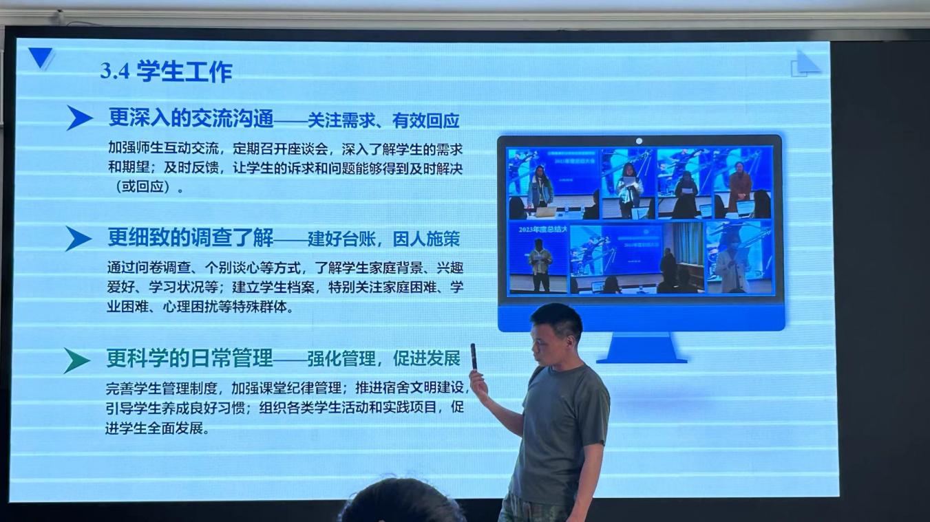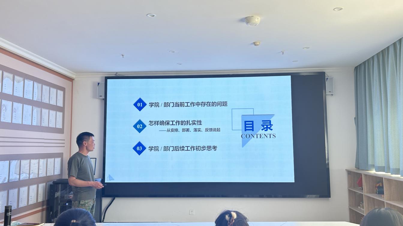 最后,柯科同志對(duì)學(xué)院、部門(mén)后續(xù)工作提出了初步思考:下一步,學(xué)院、部門(mén)將在教學(xué)工作、科研工作、管理工作以及學(xué)生工作上下苦功夫。通過(guò)建立教研組、定期開(kāi)展教研和教研成果展示,提升教學(xué)工作質(zhì)量;通過(guò)成立課題組、加強(qiáng)課題研究和強(qiáng)化推廣運(yùn)用,提升科研工作水平;通過(guò)進(jìn)一步完善管理制度、加強(qiáng)團(tuán)隊(duì)建設(shè)和量化工作指標(biāo),提升管理工作效能;通過(guò)深入與學(xué)生交流、建立相關(guān)臺(tái)賬,因人施教、科學(xué)管理,提升學(xué)生工作成效。切實(shí)使學(xué)院、部門(mén)工作質(zhì)量取得實(shí)質(zhì)性突破,建設(shè)水平踏上更高的臺(tái)階。