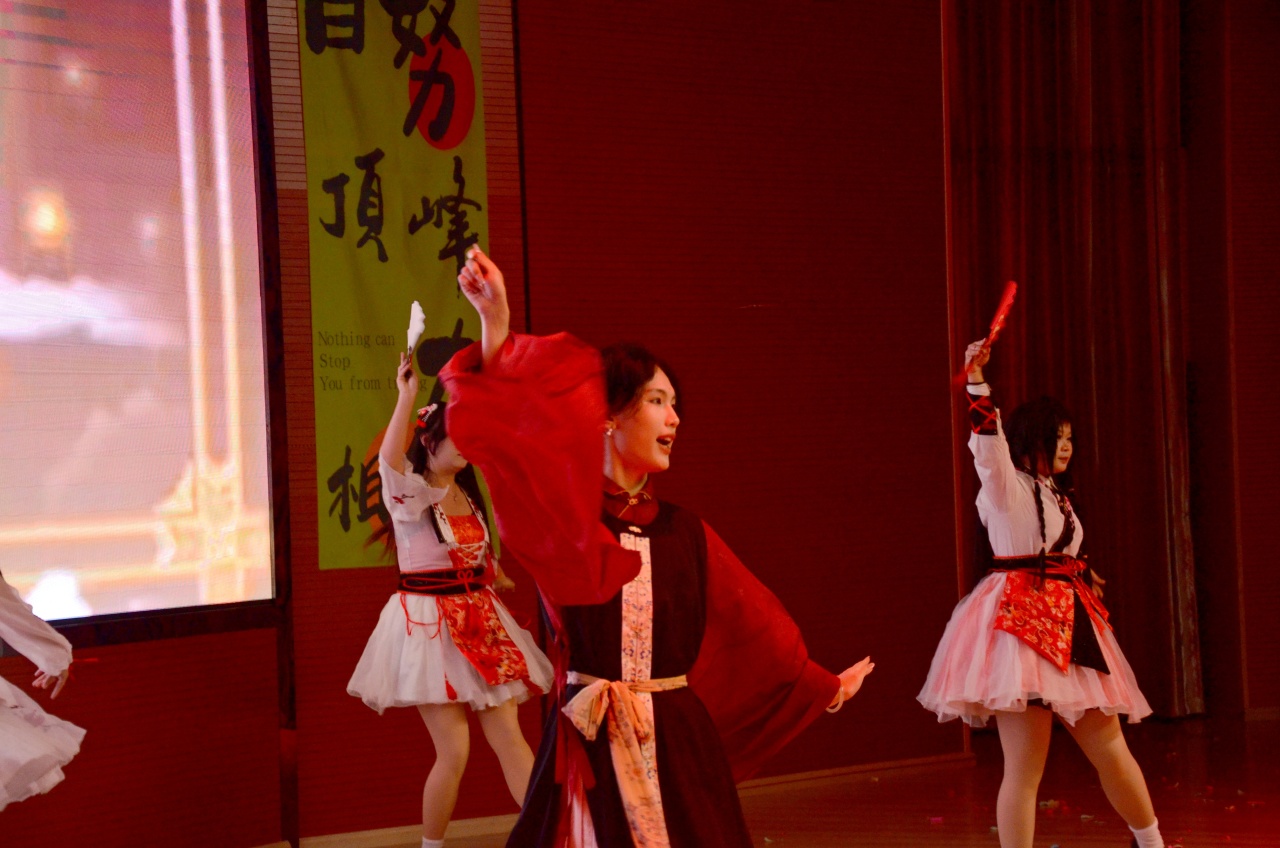 教師代表黃會(huì)端上臺(tái)致辭。師者勉勵(lì)學(xué)子勤學(xué)奮進(jìn),學(xué)子立志不負(fù)時(shí)光,期望與夢(mèng)想是今晚的華章。