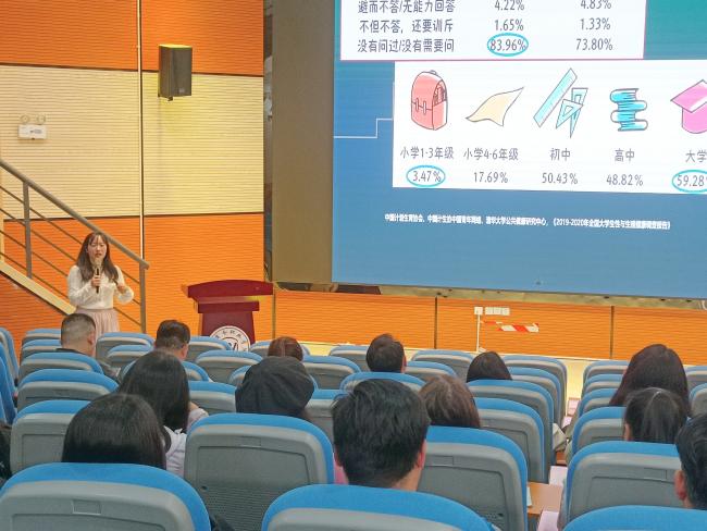 李老師以“預(yù)防為先,關(guān)愛為本”為核心,圍繞“關(guān)心關(guān)愛學(xué)生、案例講解、預(yù)防教育”三大模塊展開培訓(xùn)。