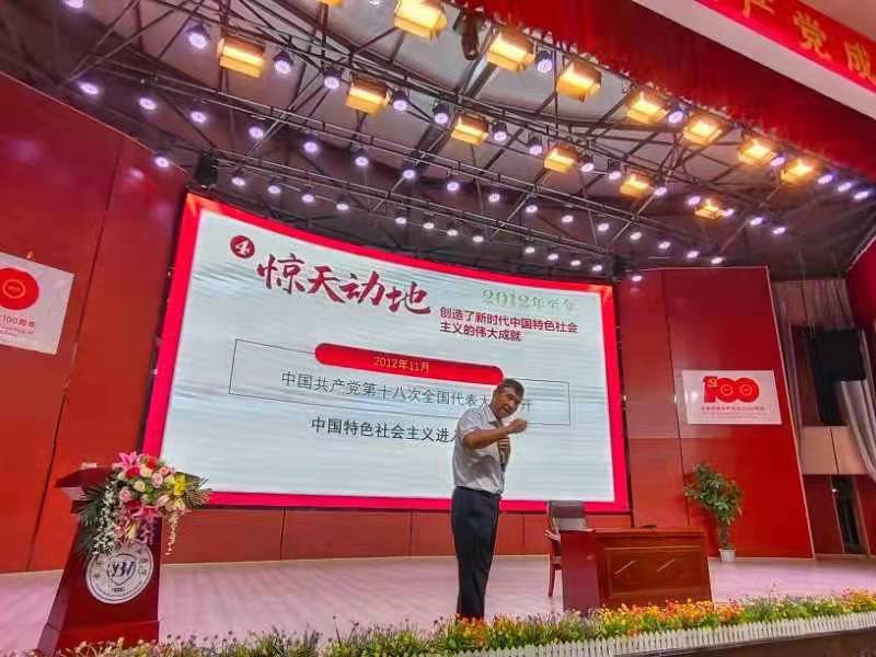 其次李校從四個(gè)方面將其精神傳達(dá)到每位師生心中。李錫云校長(zhǎng)以自身1970年下鄉(xiāng)的經(jīng)歷為切入點(diǎn),向各位同學(xué)、老師展示了建黨時(shí)期生活的艱難,感嘆中國(guó)共產(chǎn)黨百年發(fā)展的艱辛與不易,更感嘆整個(gè)國(guó)家在中國(guó)共產(chǎn)黨的領(lǐng)導(dǎo)下發(fā)生的翻天覆地、日新月異的變化。