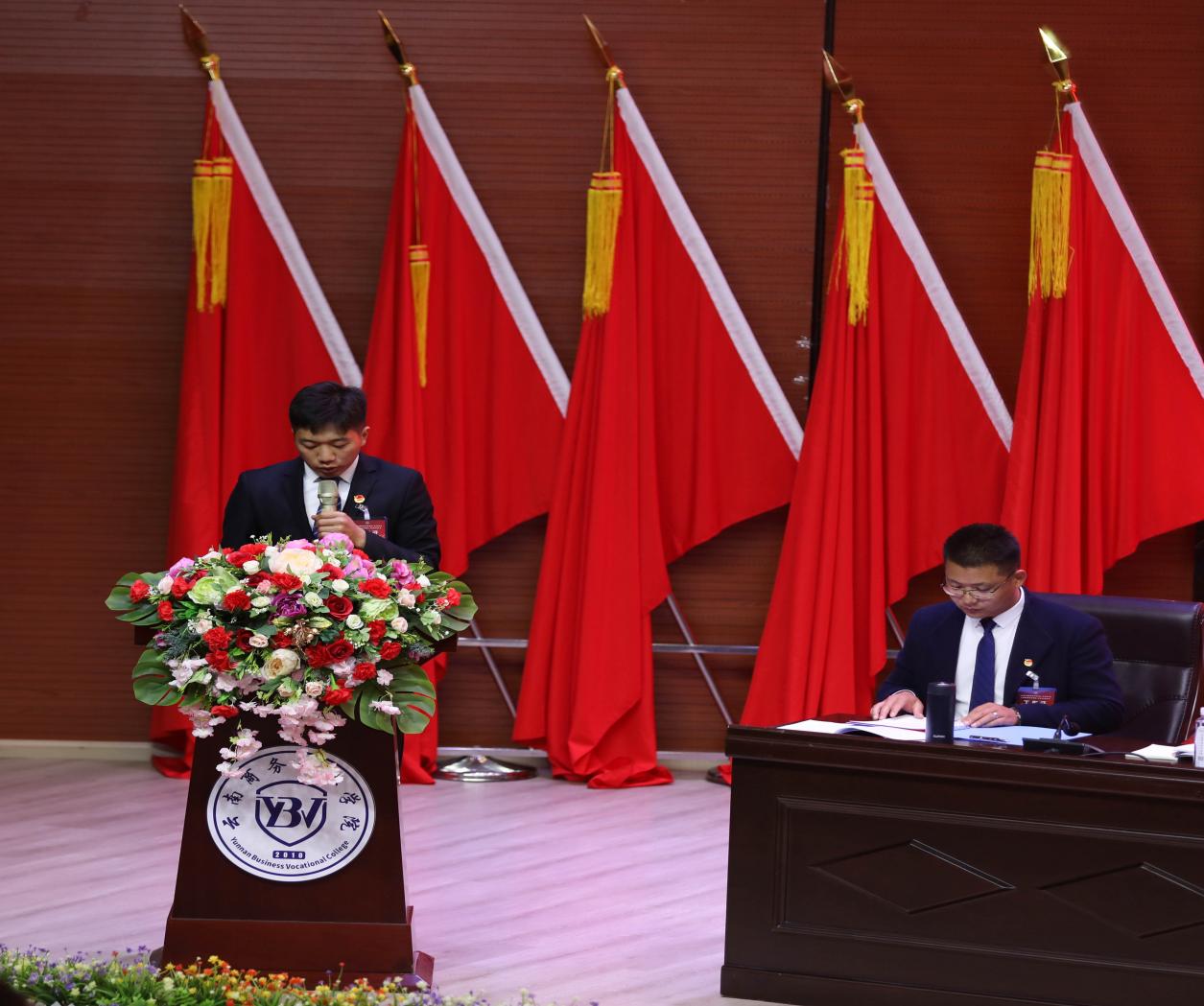 李晶鑫同學(xué)代表云南商務(wù)職業(yè)學(xué)院第一屆學(xué)生會(huì)委員會(huì)作《勇于自我革命 服務(wù)同學(xué)成長 在實(shí)現(xiàn)中華民族偉大復(fù)興的中國夢(mèng)進(jìn)程中書寫青春篇章》為題的工作報(bào)告。