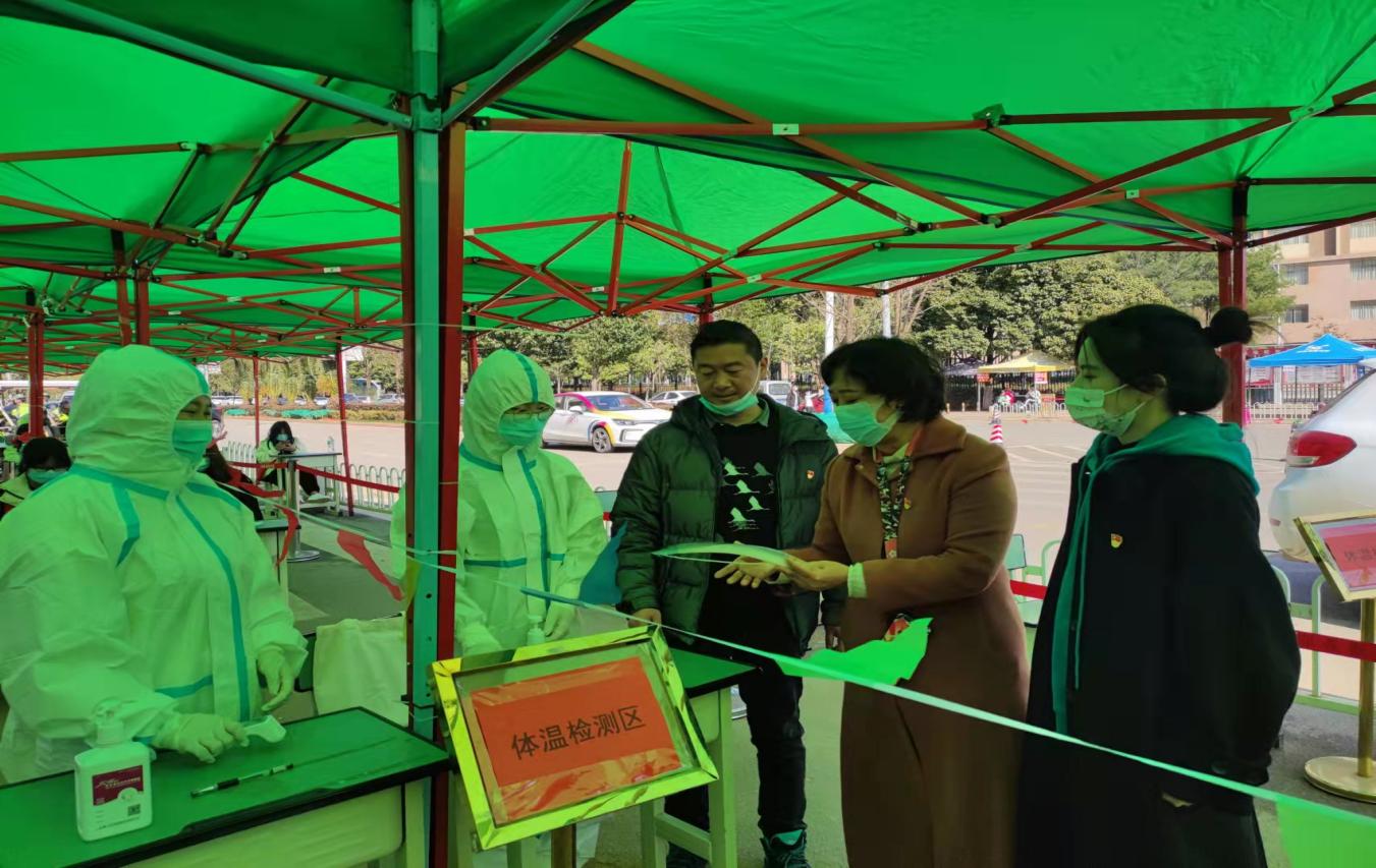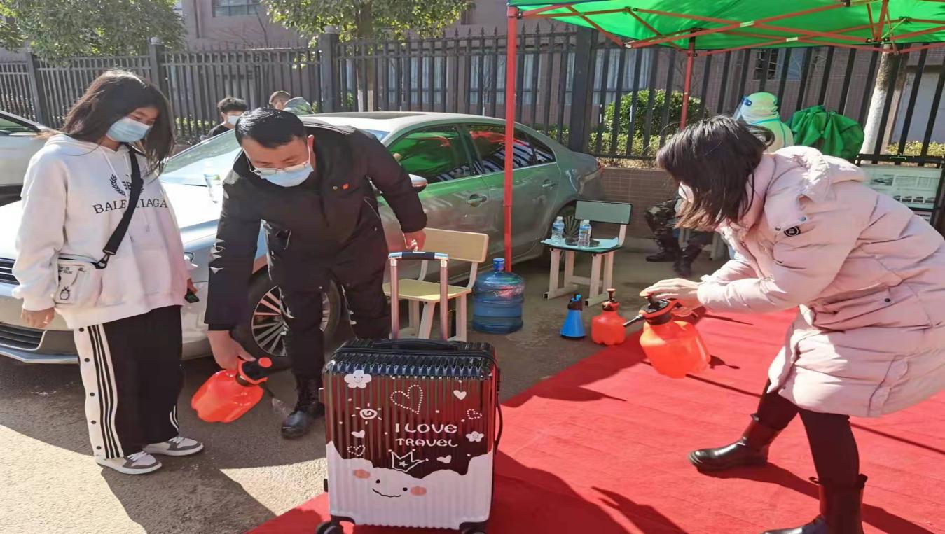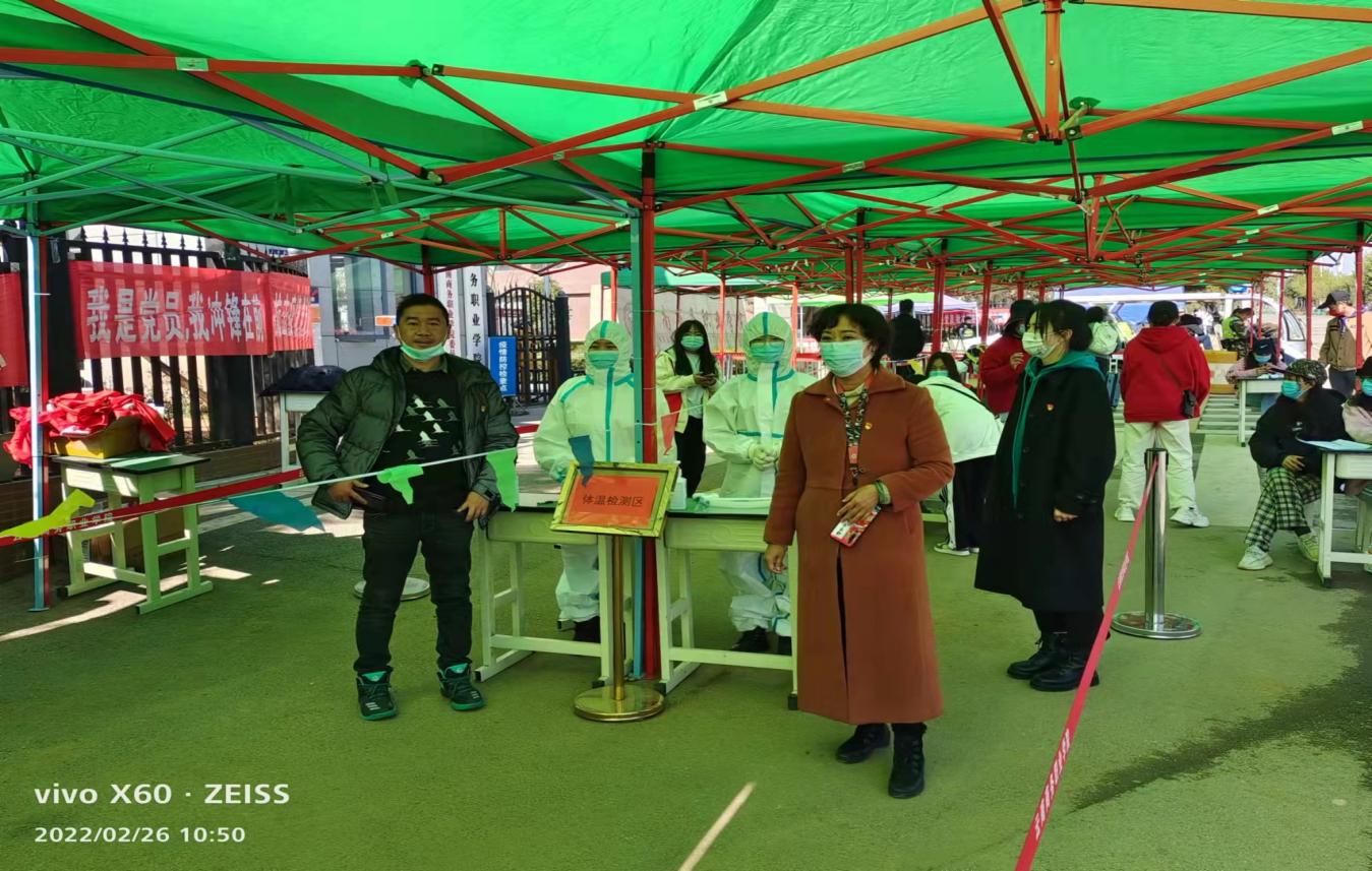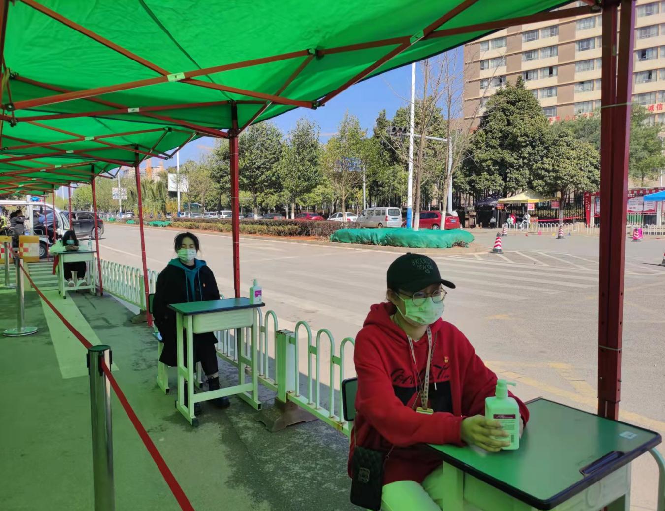 會議結(jié)束后,在郭愛梅書記和徐林勇副書記的帶領(lǐng)下,全體黨員與全院教師分成小組輪流在校門口執(zhí)勤,定崗定責為學生重返校園做好材料檢查、體溫測量、消毒查殺等。