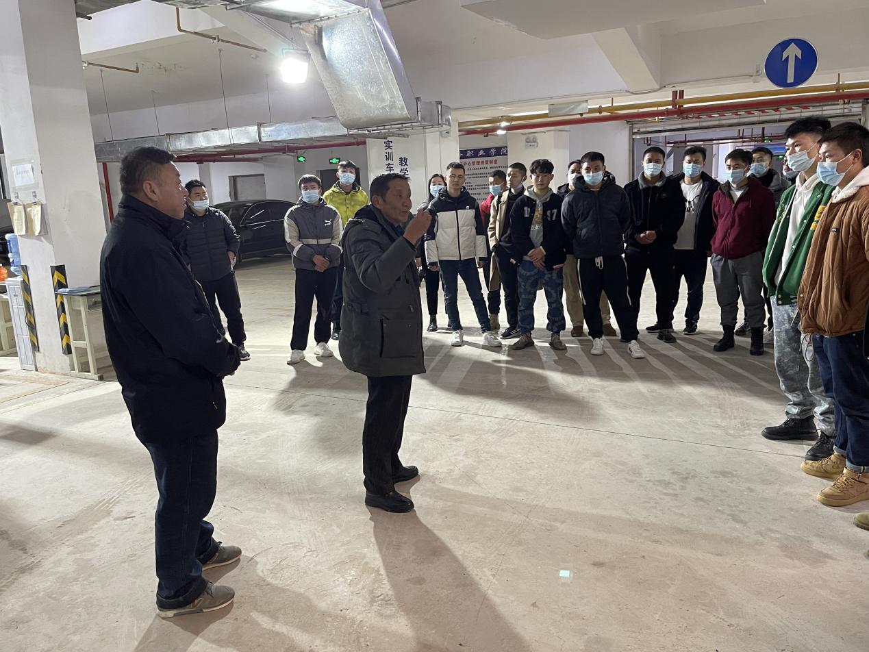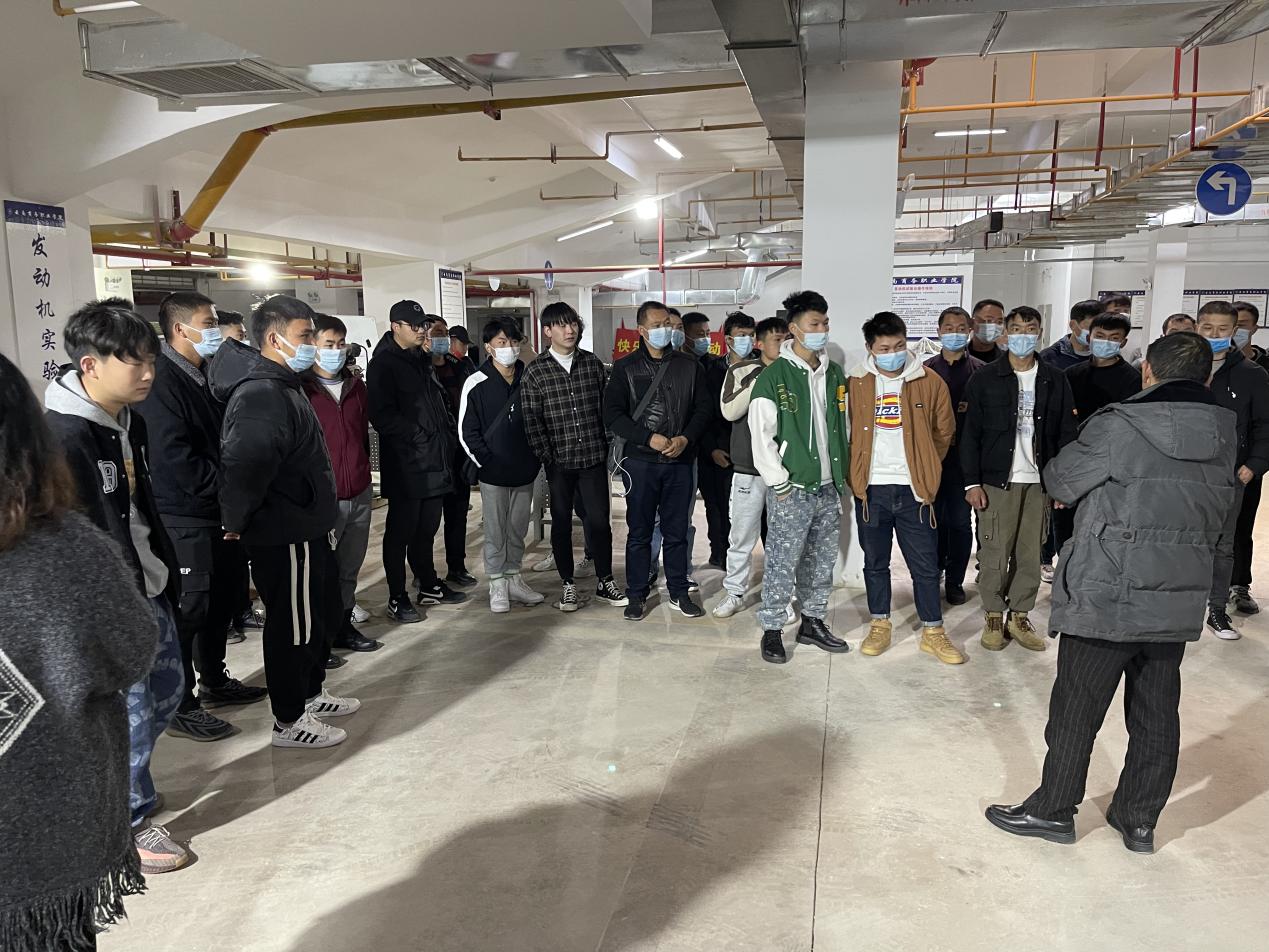 (學生參觀汽車檢驗專業(yè)實訓基地)