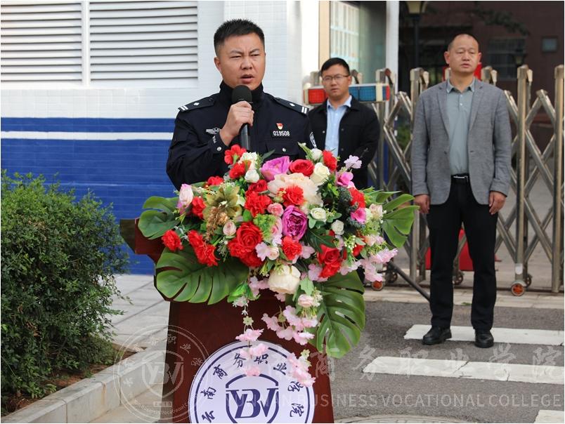 李曉明副所長在儀式上致辭。他強調(diào),建設(shè)“校園110”是嵩明公安和云商積極貫徹落實昆明市人民政府、云南省教育廳關(guān)于加強校地聯(lián)動推進駐昆高校校園及周邊治安問題綜合治理工作方案的通知要求的重要一環(huán),希望學(xué)校在接下來的安全管理中,充分發(fā)揮好“校園110”的作用,真正把壓降警情及安全工作落到實處。