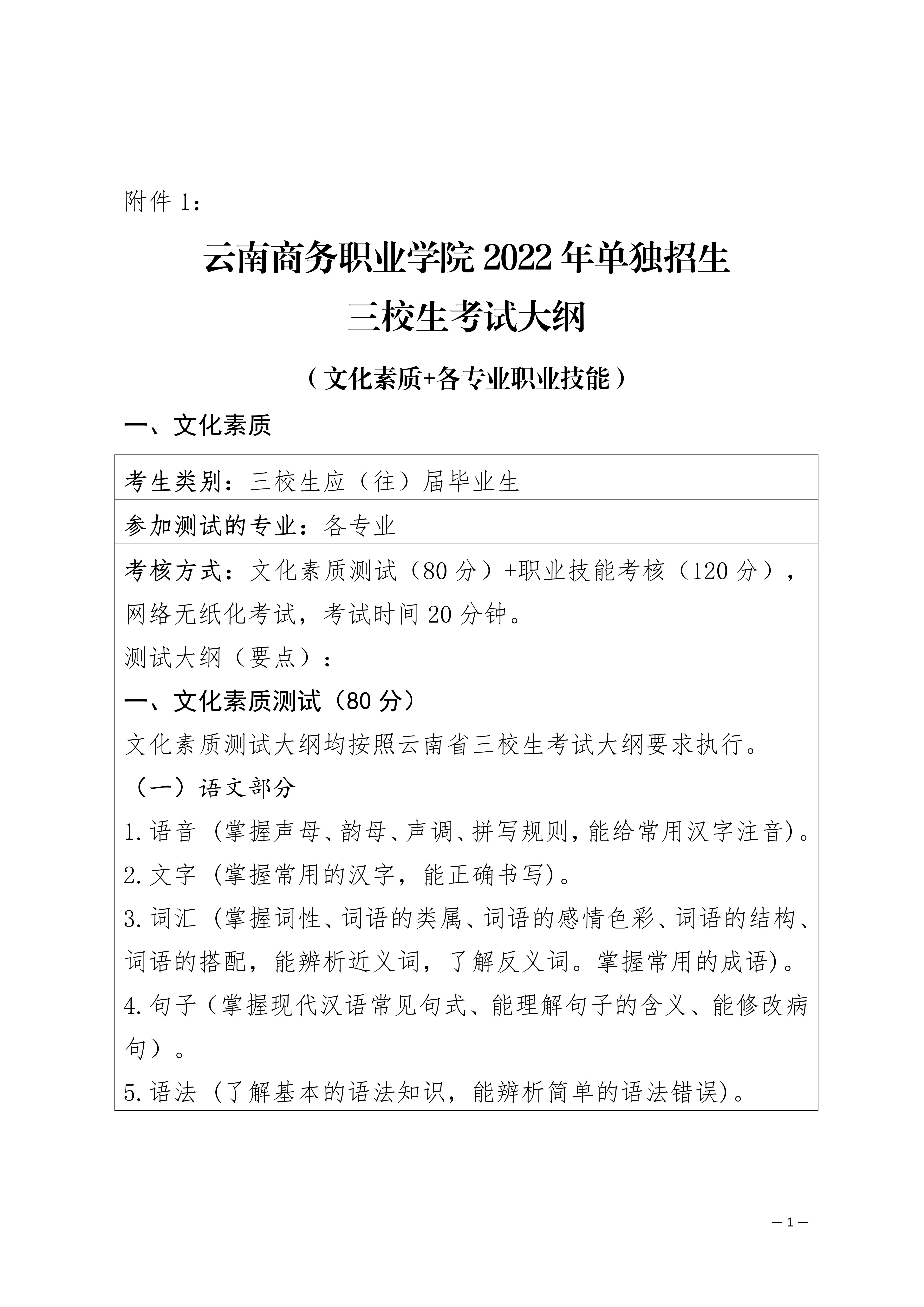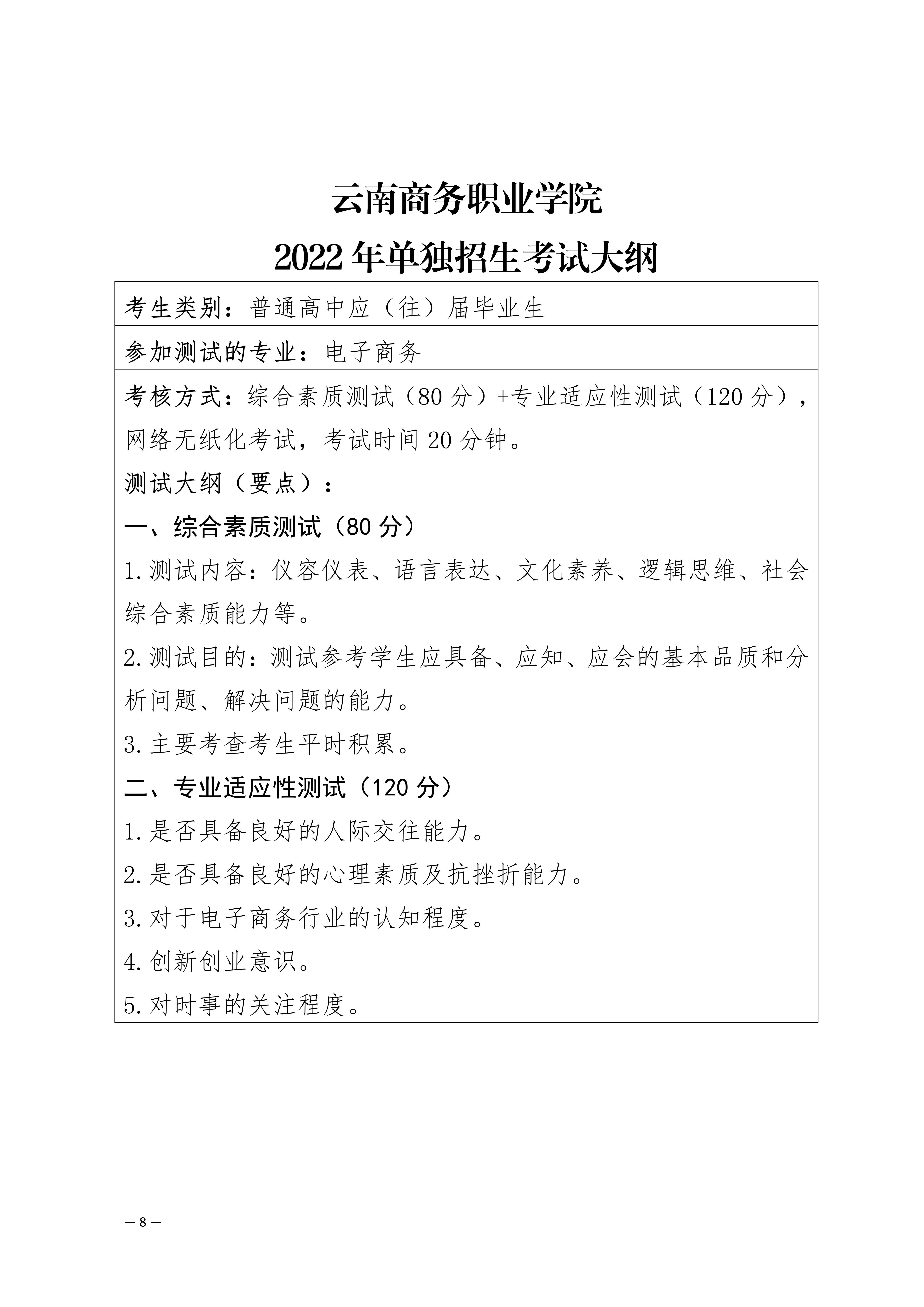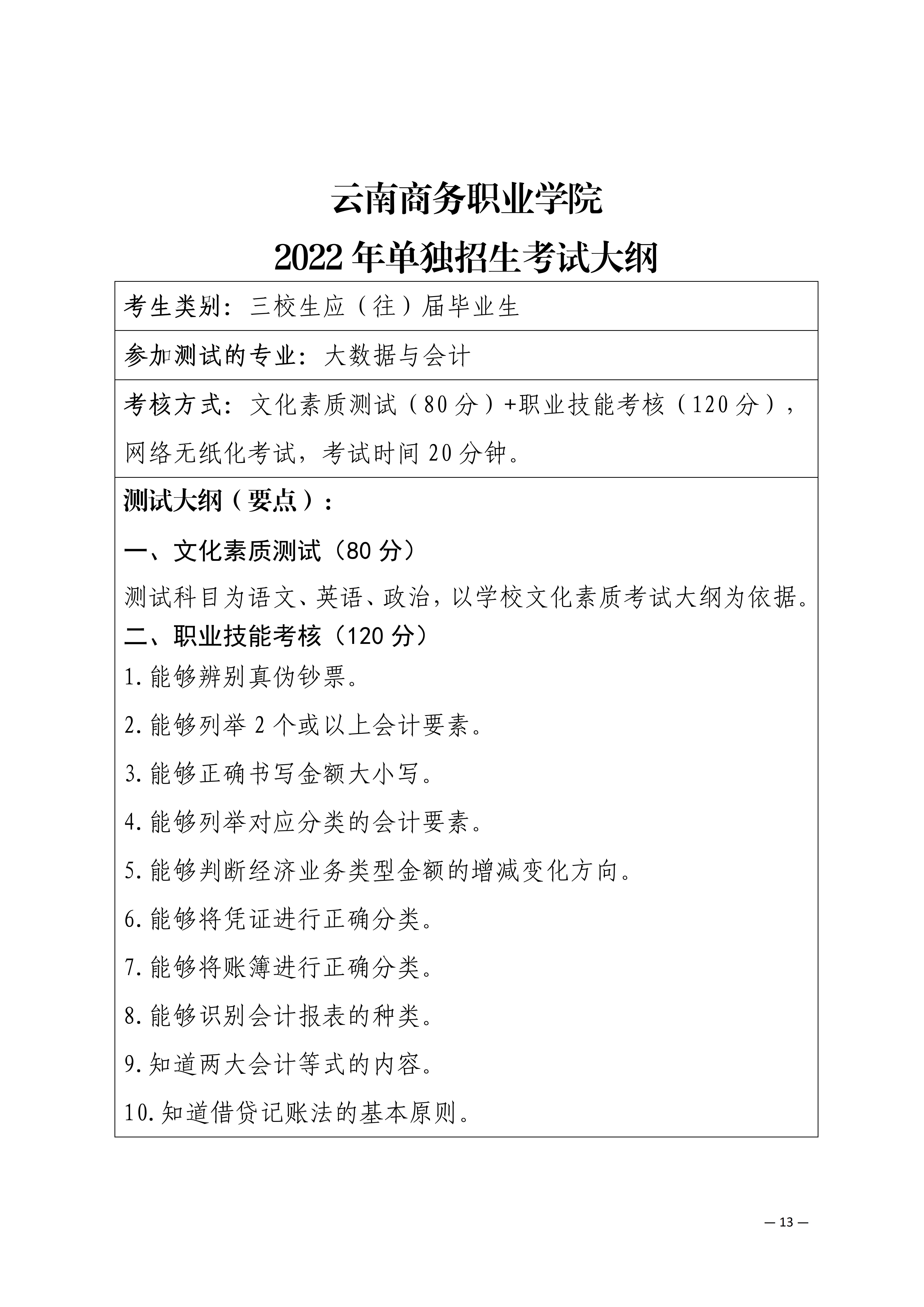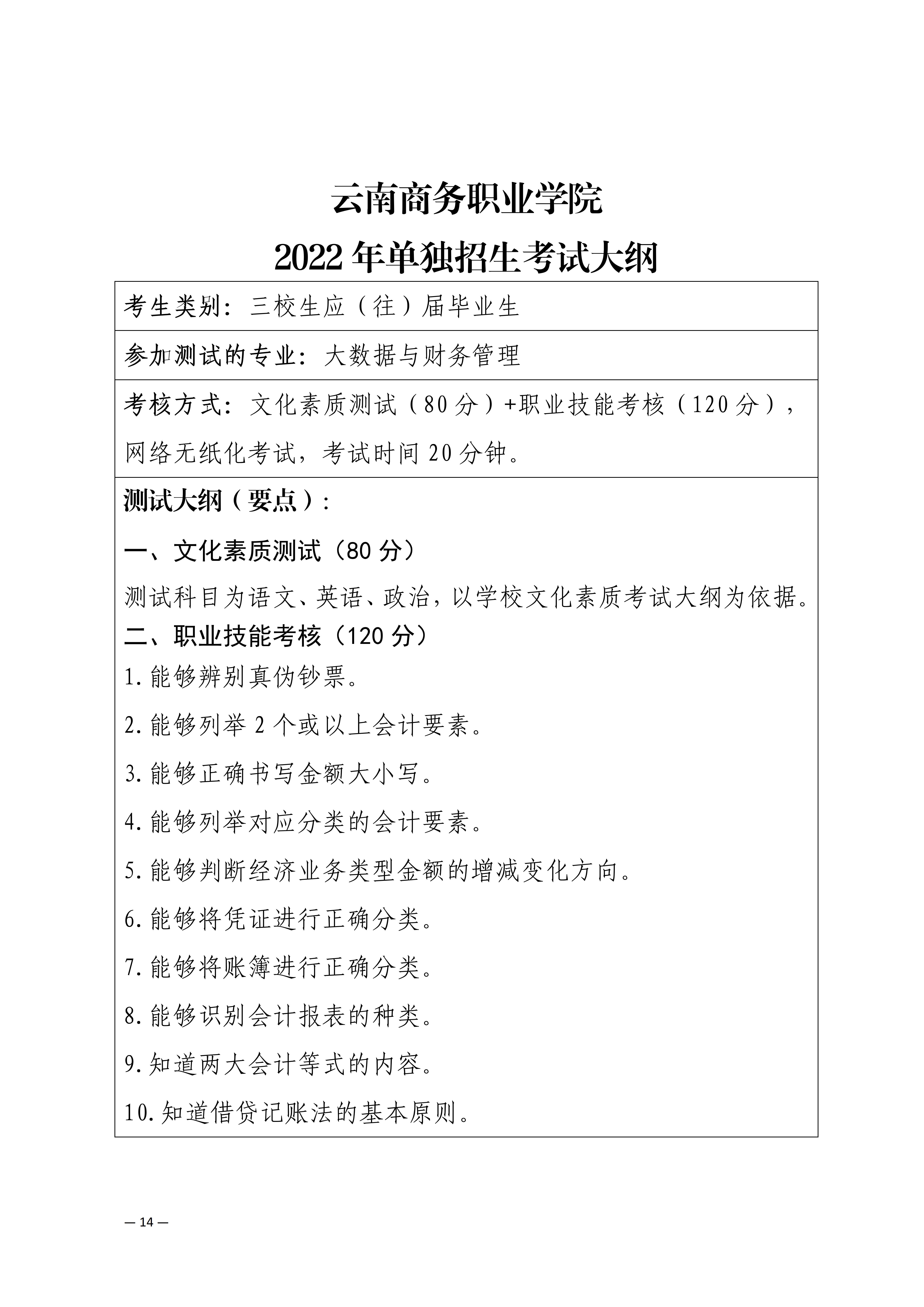 【單招考試方案】云南商務(wù)職業(yè)學(xué)院2022年單獨(dú)招生考試工作方案