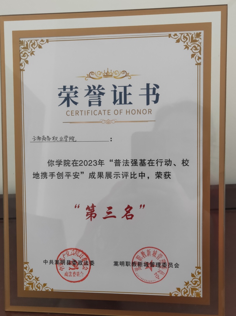 5.2023年“普法強(qiáng)基在行動、校地?cái)y手創(chuàng)平安”成果展示評比中榮獲第三名;
