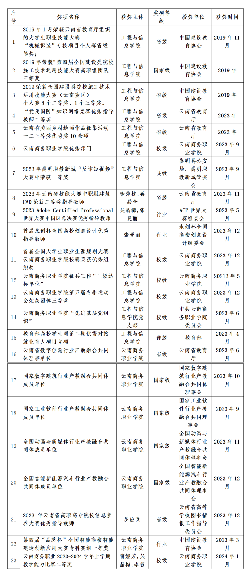 12.第四屆“品茗杯”全國智能高校智能建造創(chuàng)新應(yīng)用大賽??瀑惤M一等獎等。
